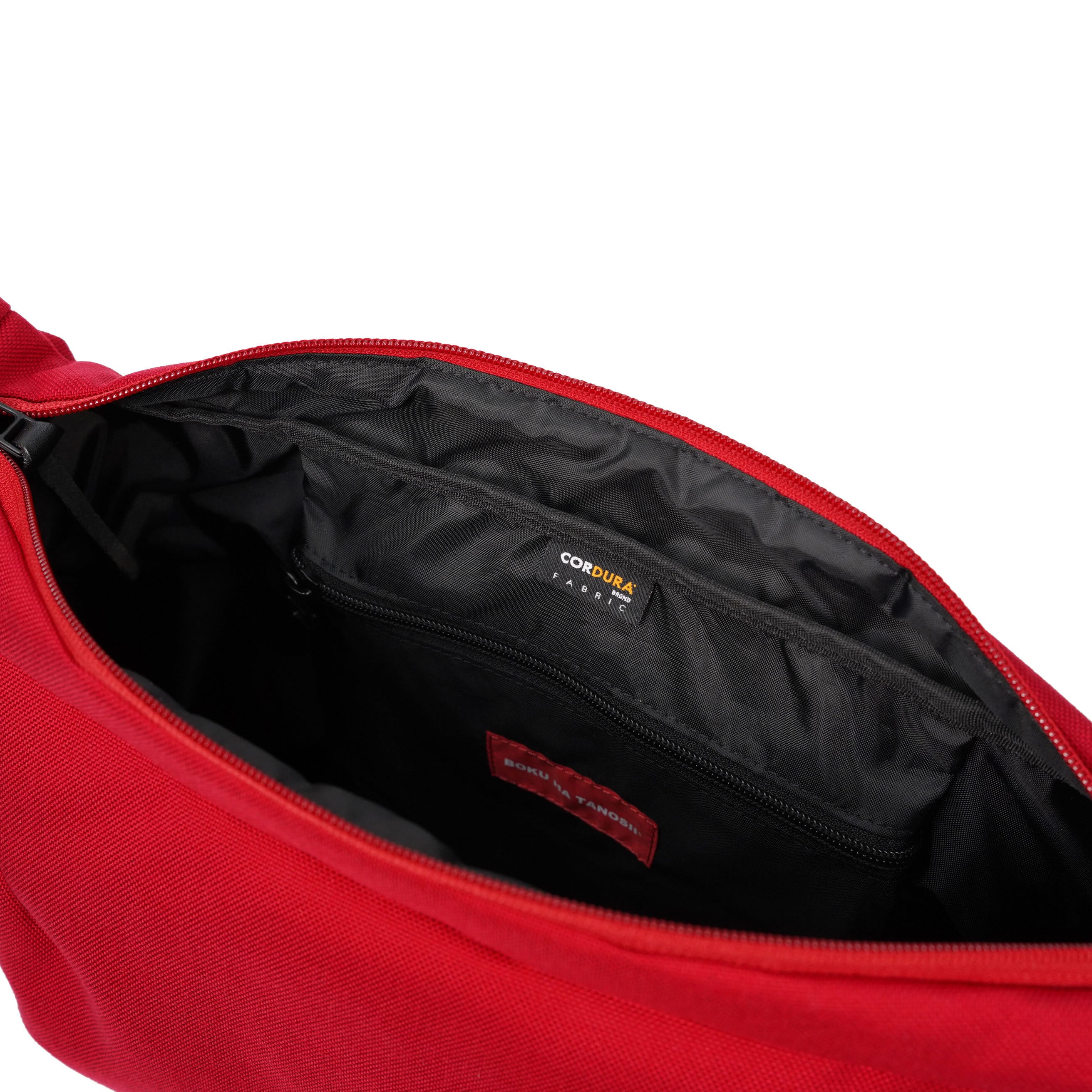 ダブルファスナーで開閉できる荷室にもファスナーポケットが付き