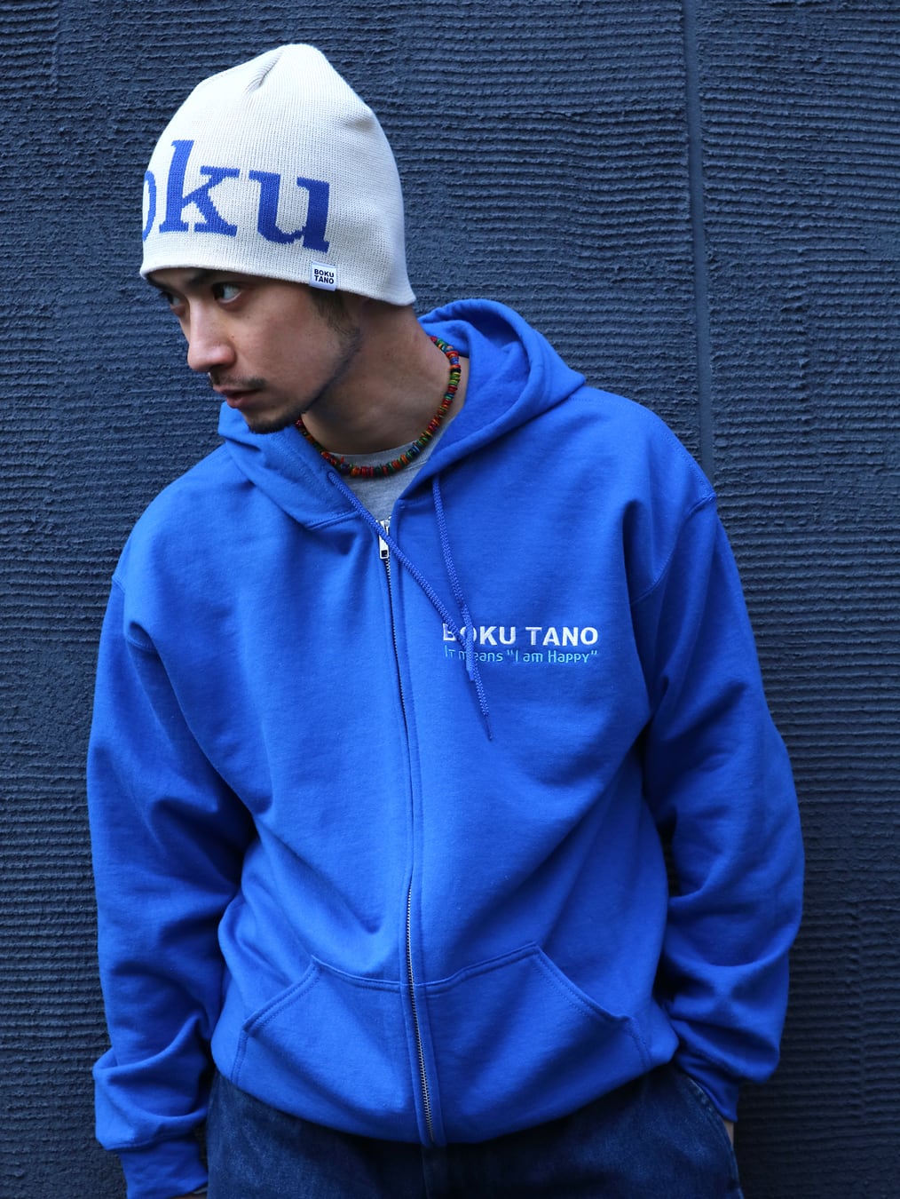 BOKU LOGOをフロントに編み立てて表現したビーニー