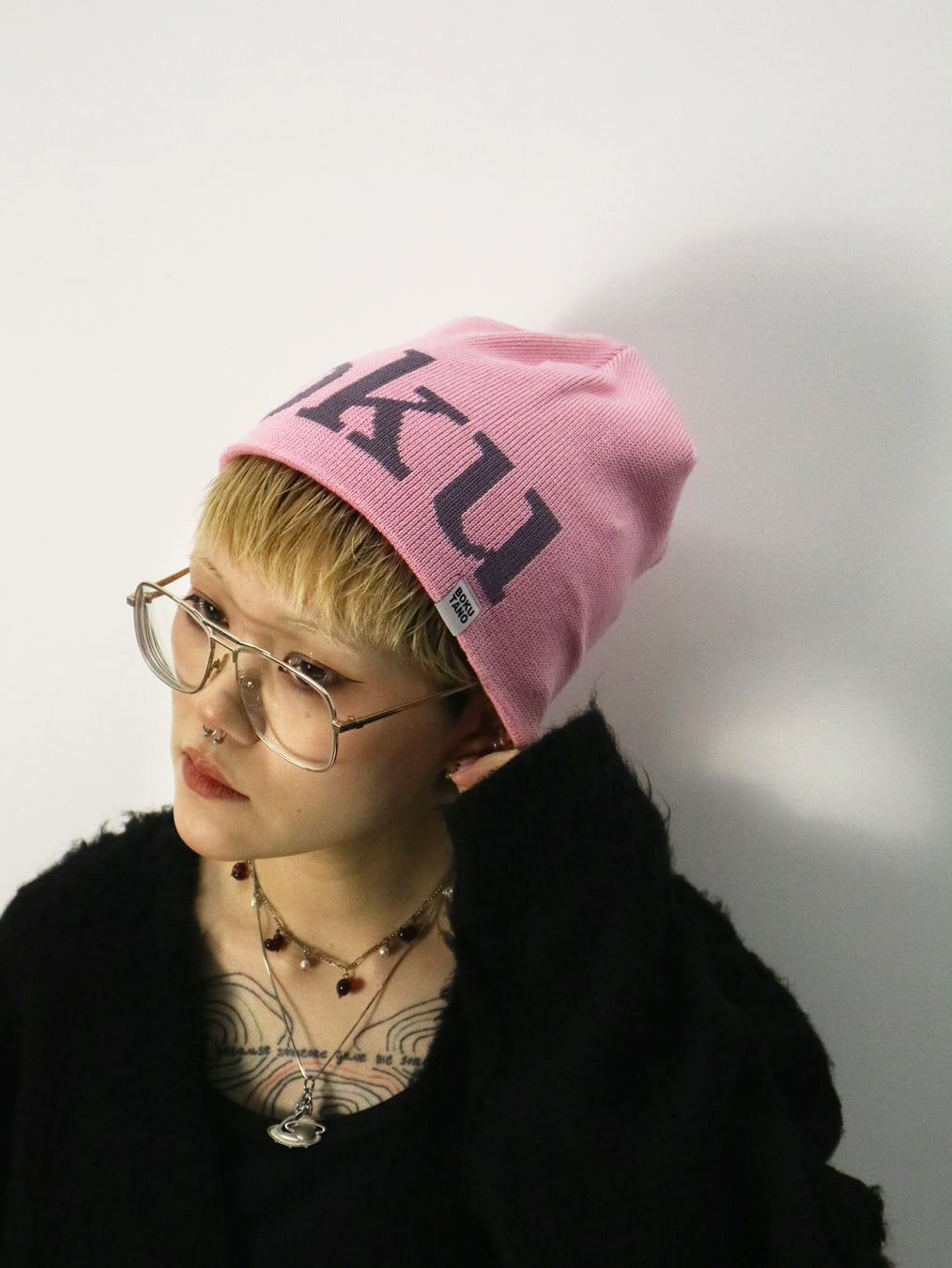 BOKU LOGOをフロントに編み立てて表現したビーニー