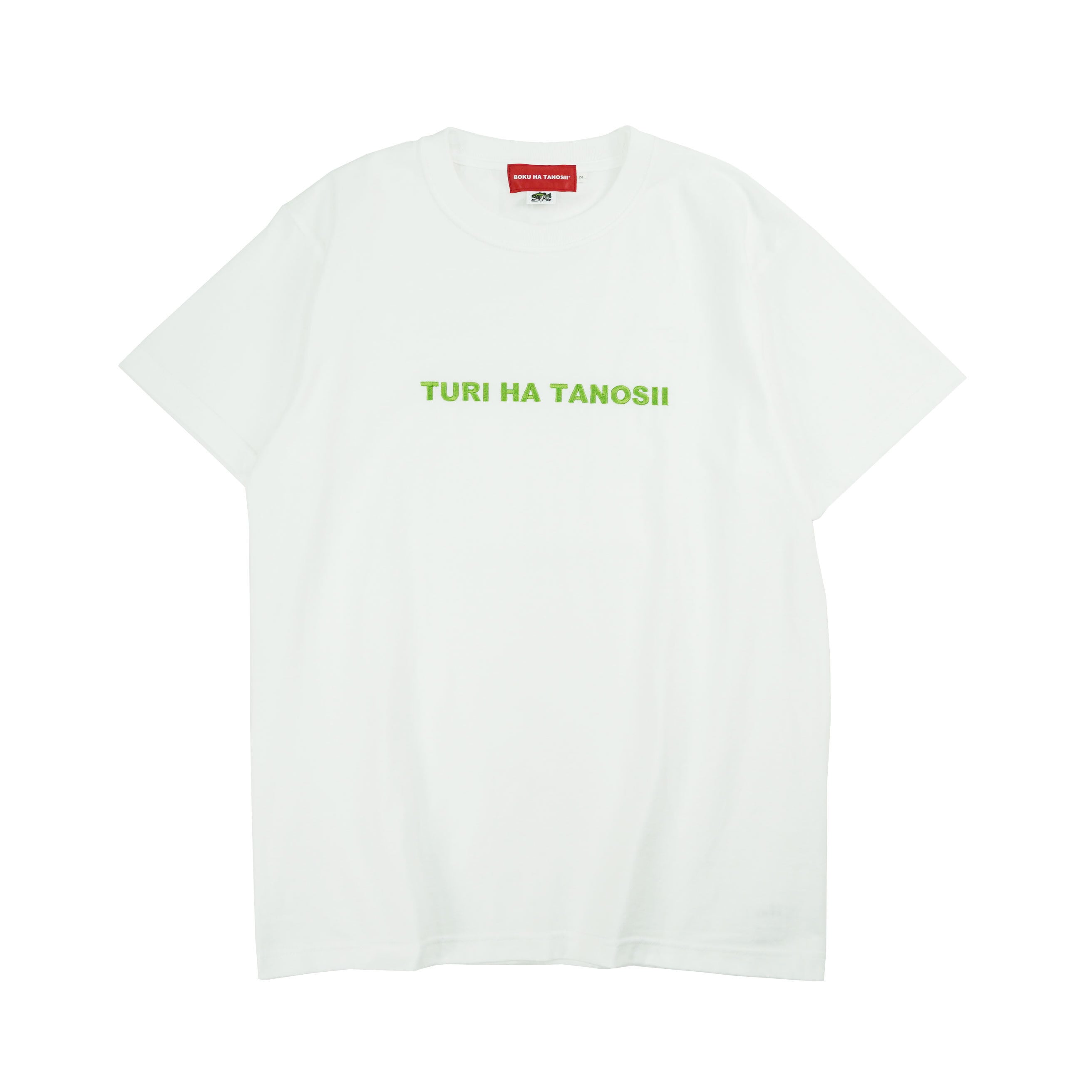 ホワイトボディにグリーン刺繍で施されたTURI HA TANOSII