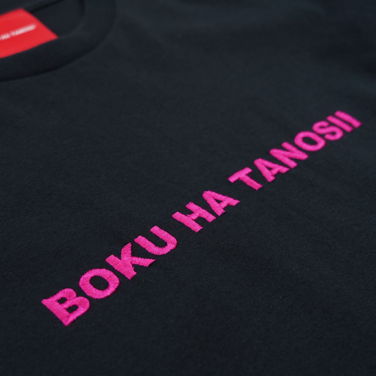 刺繍で施されたBOKU HA TANOSII